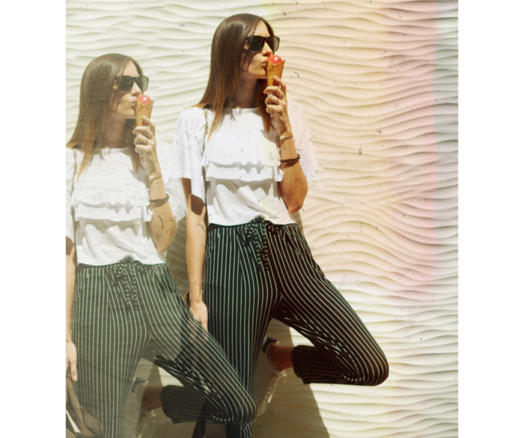 Utilice el control deslizante de atenuación para dejar que se vea parte de la imagen original. Este puede ser un aspecto genial si busca algo abstracto o un poco alucinante, como una doble exposición. Conseguimos este aspecto genial clonando a la mujer a la izquierda de ella, luego ajustando el control deslizante de atenuación para que la versión clonada parezca más transparente.