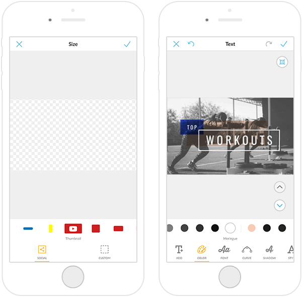 Crear un banner, un ícono de canal e incluso una Thumbnail de YouTube en la aplicación móvil gratuita PicMonkey también es muy fácil de hacer. Puede comenzar con una imagen o un lienzo en blanco y usar la función de recorte para obtener el tamaño social exacto que necesita. Consulte 5 Formas de Llevar sus Diseños Móviles a Nuevas Alturas para obtener más información sobre cómo hacer obras maestras móviles.
