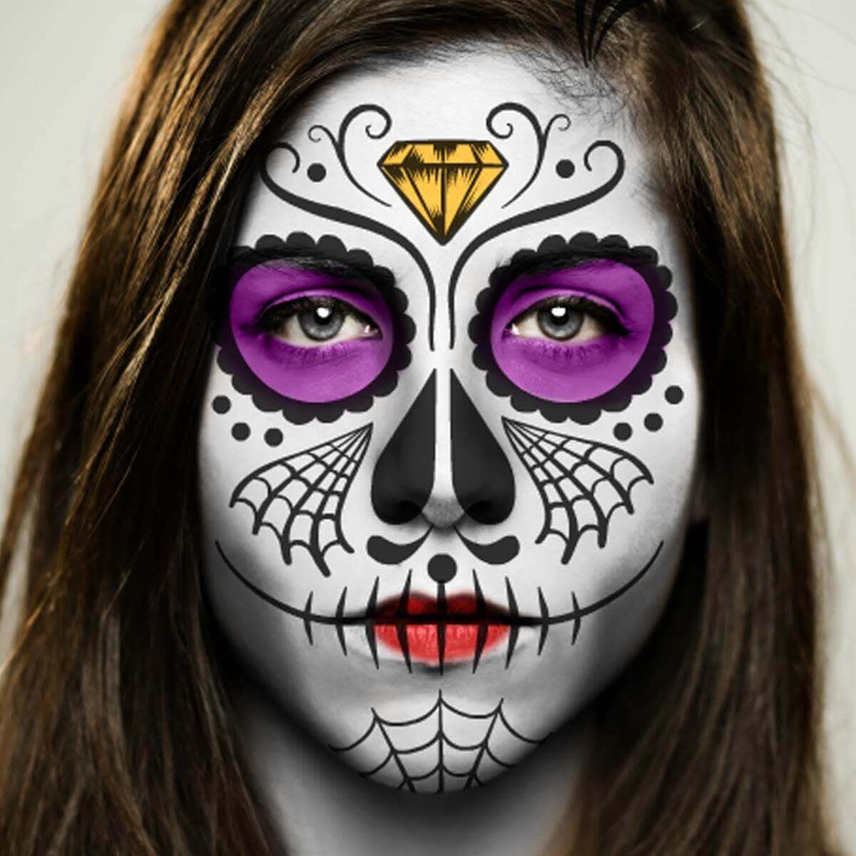 Por último, las Catrinas. Sirven como elementos decorativos, pero también las puedes aplicar directamente sobre el rostro para disfrazarte de Día de los Muertos (¡y con un solo clic!).